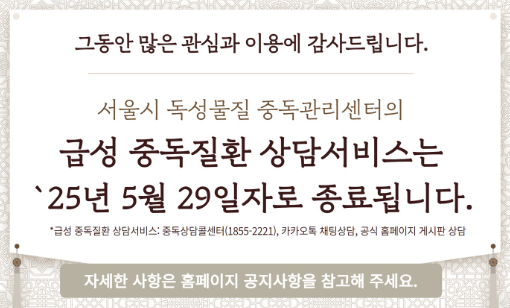 《서울시 독성물질 중독관리센터 서비스 종료 안내, 2025년 5월 29일》 |